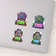 Paquete de pegatinas de Halloween con una colección de brillantes cabeceras de cementerio de neón adornadas con esqueletos, calabazas y velas.