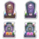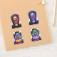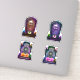 Paquete de pegatinas de Halloween con una colección de brillantes cabeceras de cementerio de neón adornadas con esqueletos, calabazas y velas.