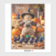 Un ilustracion festivo de Halloween que representa un alegre espantapájaros rodeado de calabazas, dulces y hojas de otoño, colocado en un acogedor espacio de calabaza de tono cálido. Perfecto para decoraciones de temporada o tarjetas de felicitación.
