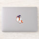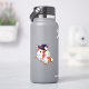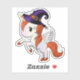 Pegatina festivo de Halloween con un Pegasus de Unicornio con un hombre naranja, cola, pezuñas y un cuerno de color dulce. Unicornio está usando el gorra de una bruja con una araña colgando del final. Luna llena amarilla con un borde arco iris.