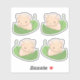 Un pequeño ratón lindo está flotando en una gran hoja verde. Conjunto de 4 pegatinas.