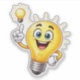 Bright cartoon light bulb character expressing a eureka moment with a cheerful smile and raised finger. Symbolizes ideas, creativity, innovation, inspiration, and problem solving. Perfect for business concepts, startup themes, education materials, presentations, apps, marketing visuals, stickers, and fun creative projects with a positive, energetic tone.