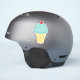 Ilustracion de un cono de helado con una cuchara de helado azul coronada con espolvorines y una cereza.