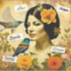 Pegatina Hermosa mujer de época con pájaros y flores