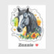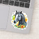 Pegatina Hermoso caballo negro rodeado de flores amarillas