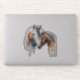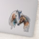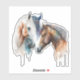 Pegatina de contorno con un hermoso dibujo de acuarela. Con un par de caballos, marrón y blanco. Cabeza y cuello visibles con pintura goteante a lo largo de la base de su cuello. Vibra del suroeste.