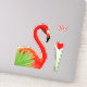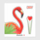 Pegatina Hermoso Flamingo con hojas de palmera y corazón