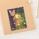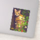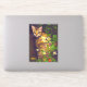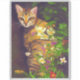 Pegatina en un ilustracion de un hermoso gato abisiniano en un jardín de medianoche, con flores nocturnas florecientes