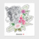 Decal de vinilo / pegatina de contorno con un hermoso ilustracion con un retrato de leopardo gris, negro y blanco. Este encantador animal está rodeado por un ramo de flores tropicales. Elegante, exótico y encantador.