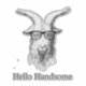 Hipster Ganado de cabra con gafas y cita de Hello Handsome