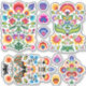 Conjunto de stickers lindos con colores vibrantes. Genial para todos los amantes del arte popular. Esta hoja de stickers está optimizada para el tamaño 8x8 y superior. Si necesitas estas pegatinas como hoja más pequeña, probablemente necesites cambiar el tamaño de cada pegatina para que estén separadas entre sí. Si no sabes cómo hacerlo, ponte en contacto conmigo y lo haré por ti.