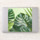 Hojas de Monstera y palmera sobre un fondo verde pálido