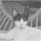 Fotografía en blanco y negro de un gato con un aspecto sexy. Tomada de Las Pinas, NCR, Filipinas.