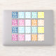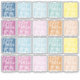 Hola, texto 2024 en rectángulos llenos de colores. Amarillo, rosa, azul, verde, beige y más.