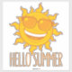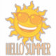 Personalizado vectorial personaje de sol usando gafas de sol con texto de Hello Summer. Genial en verano. Palabras clave: playa, llamas, personalizado, alegre, fuego, llama, amistoso, gafas, alegre, calor, calor, humor, ilustracion, temporada, sombra, sonrisa, estrella, verano, sol, gafas de sol, vacaciones, vector, clima, icono, verano