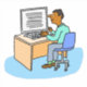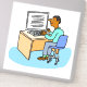 Ilustracion de empleados de Office. Dibujo de un trabajador de oficina en su escritorio. Pegatina mostrando a un hombre asiático trabajando en una oficina en su computadora. Trabajador de oficina masculino asiático.