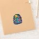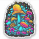 Arte neón colorido con hongos azules y rosas y flores y fondo negro.