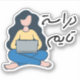 Chica estudiando con pegatina de tipografía árabe, hora de estudio en idioma árabe