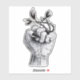 Pegatina de arte de terror con un dibujo de tinta que representa una mano en puño con las uñas negras y un anillo negro con monstruos malvados y dientes afilados. Un ilustracion trepidante y divertido con un toque gótico.