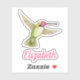 pegatinas de vinilo personalizado con un colibrí acuarela y su nombre.