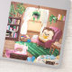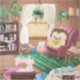 Un acogedor erizo se reclina en una cómoda silla con un libro en este ilustracion acrílico de Lydia Holloway.