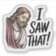 Esta divertida pegatina presenta una imagen clásica de Jesús con la leyenda "¡Lo vi!" Añade un toque de humor divino a tu portátil, botella de agua, coche o cualquier otra superficie que necesite un poco de supervisión celestial. Perfecto para aquellos que aprecian el humor religioso y quieren compartir un mensaje ligero con el mundo. Esta pegatina de vinilo duradera es resistente a la intemperie y está hecha para durar.