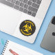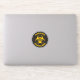 Icono amarillo de advertencia de riesgo biológico sobre fondo negro. Texto personalizado.