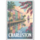 Diseño de viaje vectorial retro Charleston. Desde las coloridas casas de Rainbow Row hasta los recorridos por las plantaciones, las vistas al mar y la galardonada cocina, Charleston combina historia, encanto y vitalidad moderna en un destino inolvidable.