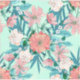 Flores de jardín de primavera giratoria y pintura acuática foliage, elegante patrón botánico, rosas, flores de primavera silvestre, follaje de bambú verde japonés y rama de plantas frutales con hojas de flores blancas, floreciente patrón de naturaleza, color rosa, coral, amarillo y verde, sobre un fondo de mezcla verde de cristal de carnaval y verde agua, arte moderno y de moda, ideal para el uso diario o la decoración del hogar. Un diseño elegante, moderno y romántico, una simple imagen artística.