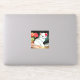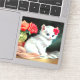 Pegatina Ilustracion de gatito blanco con flores rojas