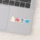 Una calcomanía de vinilo con 4 lindos gatos. Cada gato tiene una personalidad única. Uno es un gato fresco con gafas de sol y corbata, otro es un gato somnoliento, uno es un gato mirando fijamente, y uno es un gato lúdico recortado en una caja que parece lista para saltar.