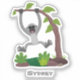 Este feliz gibón está colgando de un árbol de la selva. Dibujado en un divertido estilo de ilustracion personalizado para la diversión del bosque tropical.