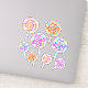 Pegatina con ilustracion digital multicolor de lollipops caramelo. Los dulces redondos son de color rosa, amarillo y azul.