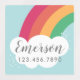 Un caprichoso pegatina de escuela a prueba de agua con un arquido arco iris vibrante con nubes esponjosas blancas y caligrafía Nombre y número de teléfono del niño debajo. Añada esto a la variedad de artículos de vuelta a la escuela para un etiquetado fácil con personalidad y estilo. Ideal para comidas, botellas de agua, bolsos de libros, carpetas, libros, toallas y otros artículos personales. Busque la coordinación de accesorios y variaciones de color adicionales por Stacey Meacham.