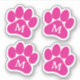 Juego de cuatro tiernas individuales de perros calientes rosados personalizadas con tu inicial o la inicial de tu perro. ¡Usa estos pegatinas de vinilo duraderos para decorar tu botella de agua, laptop, teléfono, auto o casi cualquier cosa! Puede organizar los cuatro pegatinas en cualquier patrón que desee o usarlos por separado. Esta pata en monograma rosa caliente está disponible con un fondo blanco o transparente.