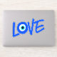 Pegatina de AMOR azul brillante y colorido. La letra O se crea utilizando un símbolo griego de ojo. El Ojo es visto como un encanto de buena suerte o un talismán.
