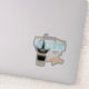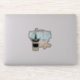 Este es un lindo pegatina de contorno que declara "Hasta los unioneses necesitan café". Un unicornio con estrellas emerge de un contenedor de café. Los colores utilizados incluyen azul verde azulado, gris y naranja.