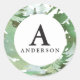 Pegatina inicial de monograma de bosque acuático