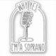 Diseño de Guay con micrófono y la cita "Por qué, sí, soy soprano". Disponible en diferentes productos como camisetas, tazas, tapicería, máscaras y más.
