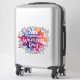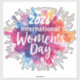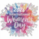 Decorative International Women's Day 2026 car and / or window sticker with colourful paint splash background in pink, blue, lilac and yellow. International Women's Day is a global day celebrating women's achievements politically, socially and economically, supporting advancement of women and to educate and to raise awareness of women's equality around the world.