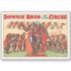 Poster de circo de la vieja Downie Brothers mostrando elefantes con mujeres y entrenadores colgando de la boca del elefante.