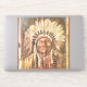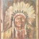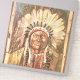 Este pegatina cuenta con un cuadro antiguo del famoso jefe indio sioux, Sitting Bull. Fue pintado por un artista de la ciudad de Nueva York que nació en 1854 y murió en 1947. Información de la Exposición de Carreteras Antiguas.