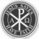 Pegatina Jesús Ahorra, Ten Fe - La Cruz Chi-Rho (blanca)
