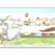 " El Boda en Cana o Matrimonio en Cana " Tema religioso interpretado con la moderna Gráfica de Computadora 3d 2d. Jesús, su madre y sus discípulos son invitados a un boda, y cuando el vino se acaba, Jesús entrega una señal de su gloria convirtiendo el agua en vino. Jesús nos invita a participar. Obra de arte inspirada en pinturas famosas del pasado de Veronés y otros. (Me retratan arrodillado como siervo de Jesús de María de mi familia y de la naturaleza de pájaros como San Francisco). Los sagrados misterios del Rosario-Luminoso 2 - El Boda en Cana