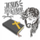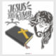 Un diseño de Pascua con Jesucristo se levanta con la cabeza de Cristo y una biblia en blanco y negro