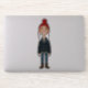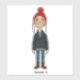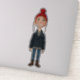 Pegatina Jeune Fille Rousse Souriante avec Bonnet Rouge et