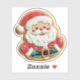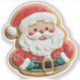 Una galleta de azúcar congelada como un feliz Papá Noel con su traje rojo tradicional y guantes verdes. Un diseño de galletas para Navidades para tu panadero favorito.