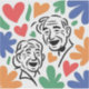 Celebrate the timeless beauty of lifelong companionship with this exquisite artistic design. Featuring a joyful elderly couple sharing a laugh amidst a vibrant burst of colorful hearts, this artwork perfectly captures the essence of enduring love and happiness. Crafted with elegant line work and a playful color palette, it is a sophisticated choice for individuals who appreciate fine art and meaningful storytelling."