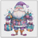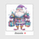 Un alegre Santa Claus vestido con atrevido atuendo violeta lleva vibrantes regalos adornados con arcos y adornos.