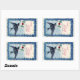 Pegatina rectangular con una imagen vintage de un pájaro azul llevando un saludo de Año Nuevo atado con cintas azules y sellado con cera roja en un marco de hermosas flores azules. Consulte la etiqueta y la tarjeta de felicitación correspondiente. Vea toda la colección de Pegatinas de Año Nuevo en la categoría CARDS & PEGATINAS en la sección HOLIDAYS.
